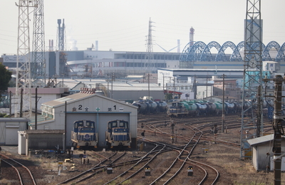 ご覧いただきありがとうございます。 本格的に 急激に寒くなってまいりました。 日本の四季は何処へいってしまったのでしょうか? 前回に引き続き神奈川臨海鉄道の撮影記録です。 (二週間経過してしまいましたが・・・) 千鳥駅での液化酸化エチレン貨物の撮影後は横浜貨物駅へ移動しました。 手始めに京急大師線の小島新田駅近くの跨線橋の上から撮影 川崎貨物駅 凸型が三機もいらっしゃる。奥には分岐した線路と大量の…