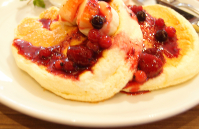 食べ物の写真は難しい・・・。 何だか毒々しい。 フルーツソースが注文時の気分だったのですが、一口食べたら メープルソースにしたらよかったという後悔・・・。 モノクロに逃げてみたところで毒々しさは変わらない・・・。