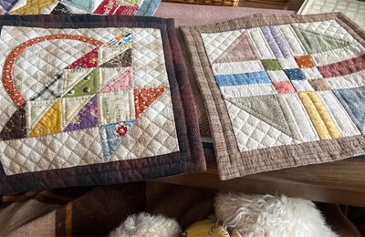 曇り −2/−5 最高気温がマイナスで 積雪は10センチ位かな 寒い一日です サンプラーのミニキルト再開 久々に途中だったサンプラーのミニキルトを クローゼットの奥から出しました いつから手を付けていなかったのか? 画像を探したり過去記事を見たりで 半年間 放置していた事がわかりました💦 また再開します 先ずはこの2枚を繋げます わんこはいつものこの位置で 膝がぬくぬくです いつも応援ありがとうご…