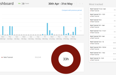 Rails Tutorialを始めてから、ちょうど1ヶ月。 全14章のチュートリアルがやっと終わった 🎉 実は勉強ログをTogglで計測していたので、そのログも載せつつ振り返りしたいと思います。