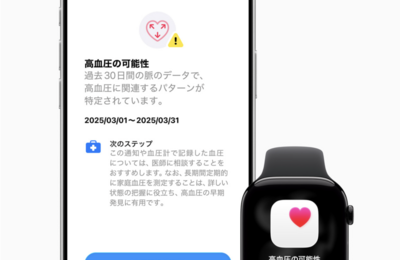 AppleのHPより 2025年12月4日より、日本でも「Apple Watchで高血圧パターンの通知」が利用可能になりました。 血圧の高い状態が続くパターン、つまり高血圧パターンが検出された場合にユーザーに通知できます。 Apple Watchの高血圧通知は、光学心拍センサーデータを用いて血管反応を分析し、30日間のデータから高血圧パターンを検出します。 通知された場合は、医師に相談するきっかけ…