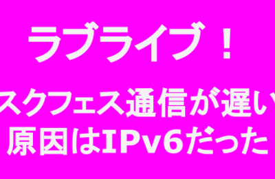 どうもWi-Fi環境だとラブライブ!スクールアイドルフェスティバル (スクフェス) が遅いので原因調査した。調査の結果、IPv6の設定が影響して通信が遅くなっていたことが分かった。 Wi-Fi・インターネット環境 designetwork.hatenablog.com なお、私はiPhoneを使用しているが、Androidでも同様と考えられる。もしかしたらiPhone (iOS) 向けとAndro…