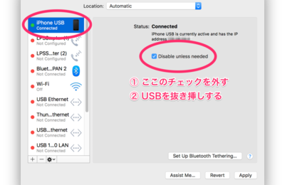 MacBook Proでネット回線をiPhoneの「インターネット共有」から得たい時、うまくつながらないことがよくあります。 Wi-Fiについては周りに似たような電波がバンバン飛んでると繋がりにくいことがあるらしくそれは仕方ない気もしますが、「USB or bluetoothのみ」に設定してUSBケーブルでつないでも上手く行かないことがあって、なんでだろうと思ってました。 インターネット共有でMa…