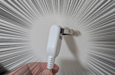 ベッドの裏にコンセント。 あるあるでしょ!こんなやつ。 これは完全に被ってますね 助けて、とよくじら君! しょうがないな~。そんなときには... クネっと曲がる L字の延長コード! -> Amazon で買える! クネっと曲がるんだぜ 早速、挿し込んでいくと~ ピタッと収まるね L字の効果でかなり圧縮されまして~ すごいジャストフィット それで、延長コードの先は、いつものようにフックにするのさ や…