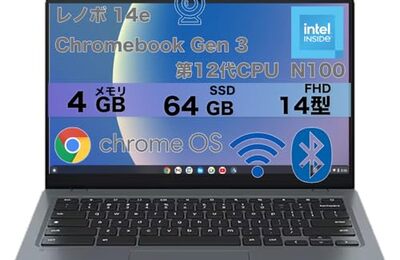 Amazonで投げ売りされていたので買ってみました 【整備済品PC】レノボ 14e Chromebook Gen 3 ノートパソコン14インチ FHD 1920x1080 第12世代 インテル N100 プロセッサー メモリ4GB SSD64GB Webカメラ内蔵 WiFi Bluetooth Type-C USB3.0 ChromeOS搭載 バッテリー90%以上 中古整備済みPC Yistnea…