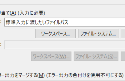 小ネタ。 EclipseからJavaコンソールアプリケーションを実行する際に標準入力をファイルから渡したい場合。[実行の構成]→設定したいJavaアプリケーションの構成を選ぶ→[共通]タブ を開き、下記設定を行う。 「コンソールに割り当て」をチェックする 「入力ファイル」に読み込みたいファイルを指定する 実行の構成「コンソールに割り当て」にもチェックが必要なことに注意。