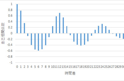 前回までの2回で、Excelで自己相関係数を計算し、コレログラムを作成するところまでできましたので、今回は、この一連の手順をVBAマクロで自動化したいと思います。 といっても、計算はたいしてややこしいものではありませんし、グラフ作成の自動化も前に何度もやってますから、これといって新機軸はありません。 ので、ソースコードを、さらっと。 '時系列データからコレログラムを作成する Sub CORRELO…