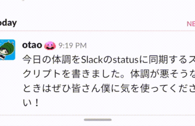 はじめに 作り方 1. Google Apps Script APIを有効にする 2. 環境を整える 3. デプロイする 3. Slackの設定をする 3.a. 絵文字を追加する 3.b. Botを作る 3.c. Webhook URLを発行する 3.d. User OAuth Tokenを発行する 4. Oura Ringのトークンを取得する 5. 環境変数を設定し、デプロイする 5. iOSで…