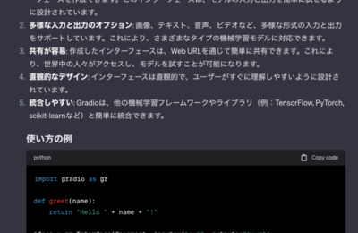 今日は「gradio を使って昨日作った OpenAI TTS お試しツール を実装」していきたいと思います。 gradio とは? 人間的に簡単にまとめると、gradio は機械学習等のデモに必要最低限な UI を揃えた Web アプリ開発支援ライブラリです。自由度は低いが、ipywidget 並に簡単に UI を作ることができます。HuggingFace のデモとかによく使われているアレですね…