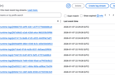 はじめに Bedrock AgentCore Runtimeを使っていると、CloudWatch Logsのログストリームが大量に作成される問題に遭遇しませんか。エージェントを呼び出しても、どのログストリームにログが入っているのか、目的のログを探すのに苦労しがちです。 毎時10個のペースで増えるログストリーム この記事では、この問題の対策を紹介します。 解決策 この問題は、コンテナ起動時にログを出…