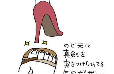 今、君が一歩でもよろめいたら、たぶん僕は死ぬ・・・ そんな真夏の満員電車でよくある光景。よけようにも身動きがとれないからよけようがない。ただただ怖い。ヒールの高い靴を履くなとは言わないけど、頼むからスマホをいじる余裕があったら、つり革をしっかと握ってくれよ、と心から思う。