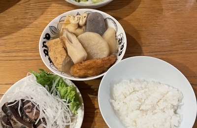 この冬、初めてのおでんです(*^^*) おでん 白菜漬け かつおのたたき ご飯 大根はシャトルシェフで下茹で&柔らかくしておきます。 ukiuki-biyori.com で、他の具材とともに煮るのですが、醤油は入れません。 我が家の味付けは、 本だし 乾物の昆布(全部食べる) オイスターソース 塩 酒 です。 あと、具材に練り物は必ず入れます。 おでんには日本酒ということで。 夫は最近の定番セット…