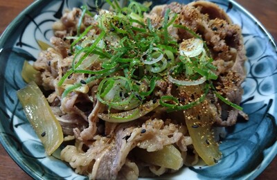 クックパッドより スーパーで大容量パックかつ見切り品の外国産牛肉、450g。 これを息子くんと二人で食べきる、バカの昼食。 牛丼は、高い牛肉でも安い牛肉でも美味しいねぇ♪