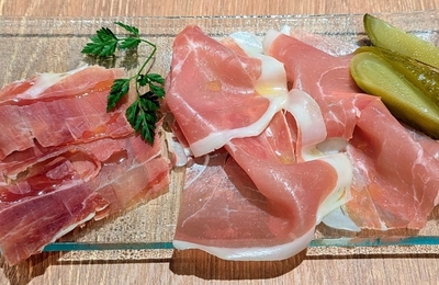 代表的なスペイン料理をいろいろ味わいました。1品目は、スペイン産生ハム2種類の食べ比べをいただきました。来店時は、イベリコ豚(写真:左)とハモン・セラーノ(写真:右)。イベリコ豚は、脂の甘みが口の中で広がるのを楽しめ、ハモン・セラーノは、芳醇な熟成の香りを楽しめ、生ハム好きにオススメ。 2品目は、タパス3種盛り合わせをいただきました。来店時は、ハモン・セラーノ、トルティージャプレーン、ピンチョスの…