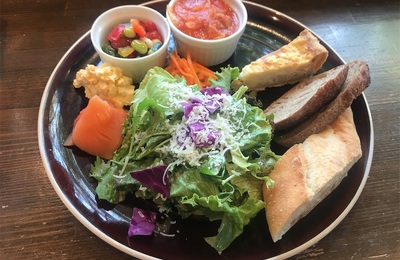 2店目は、 、、、 パン•オ•ルヴァンさんの ✨ルヴァンのお野菜プレート✨です!! (すみません、料理名まちがってるかも) お店は熊本市東区小峯にあります!! 🟡モーニングは8時〜11時 (土日祝は7時30分から) 🟡ランチは11時〜15時 今回はランチの時間に行ってみました!! お店にはたくさんのパンがあるのですが、 (パン屋さんだもん) なんとワインセラーやジェラートもあるんです!!! 今回は…