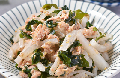 大根とわかめのツナナムル|混ぜるだけ5分!水戻し不要の簡単副菜 毎日のごはんで「あと一品どうしよう…」と迷ったときに助かる、混ぜるだけの簡単副菜のご紹介です。 随分と寒くなりましたね❄️寒くなると大根が美味しくなります。生で食べても加熱しても美味しい大根。今回は、大根の塩もみも、わかめの水戻しも不要。袋に入れて振るだけで完成のナムルです。 ローリングストックしているツナ缶とカットわかめを使った簡単…