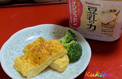 フーディストパークさんのモニタープレゼントに当選して、ヤクルトの「大豆の力 プレーン無糖400g」をいただいた。 メインはInstagramでの投稿でしたが、ブログでもご紹介します第2段です。 卵と大豆の力を混ぜると、イソフラボンの影響でしょうか、卵液がプルプル弾力がでます。普通に焼くより厚みが出て、口触りもふんわか。タンパク質✕タンパク質で栄養強化です。 プレーンとカニカマ巻きの2種。いつも朝食…