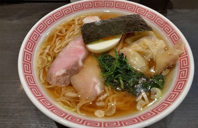 御茶ノ水から本郷三丁目にかけてラーメン店が多いですが、そのなかでも人気なのが「ラーメン大至」です。 930円のラーメンにワンタンをトッピングしました。 香りがよく、少し酸味があるあっさり目のスープに細ちぢれ麺がよく絡みます。 徐々に酸味は薄れ、飽きずに完食できました。 プリプリして甘みがあるチャーシューと、シャクシャクした甘いレンコン入りのワンタン。どちらもほんのり甘く、酸味のあるスープに合います…