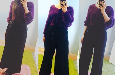 みなさん、こんにちは。 まだまだ寒いですね。 店先には春物が出てきてウキウキしますね。 気持ちと気候がなかなか釣り合わない今日この頃です。 さてさて、今日のおしゃレシピ 本日は趣向を変えて、3種のコーデを。 元の素材は 紫のもこもこ丈短ニット 黒のアンクル丈のワイドパンツ ①髪を下ろしてエレガントに 髪をざっと下ろすと、長さもあって一気に女性らしさ、エレガントさが増します。 やりすぎ防止で、足元は…