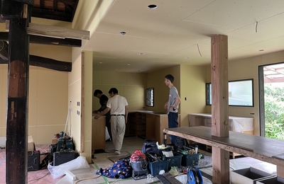 こんにちは、埋金木工所です。 古民家改修の現場もいよいよ山場のひとつ、キッチンの取り付けです。今回は、これまでも一緒に仕事をさせてもらっている福岡のキッチン製作専門 GRACE さんに、フルオーダーでキッチンを製作してもらっています。 キッチン家具職人さんの手仕事は、やっぱりすごい。ただ「使える」だけじゃなく、使う人の気持ちがちょっと上がる、そんな力があります。木の表情、角の納まり、引き出しの動き…