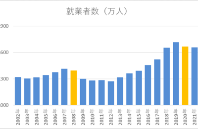 結論 ・2020年以降、転職者数・転職者数比率は減少した。 ・年代別では特に34歳以下の転職者比率の減少が顕著であった一方、35歳以上についてはそこまで大きな変動は見られなかった。 就業者数の状況 小まとめ 転職者の状況 コロナ禍の状況 小まとめ 男女間の状況 小まとめ 小まとめ まとめ データソース 総務省統計局の労働力調査をもとに資料を作成しています。データソースは最後に記載しています。 就業…