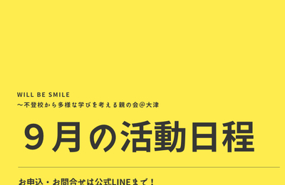 ===========9月活動のお知らせです=========== 9月は親子ともに心がぐらぐら揺れる時期です。will be smile親カフェや親子活動の機会を利用して、ほっこりと心を整えに来てくださいね。 お申込みは公式LINEからお願いいたします。https://lin.ee/j7dAjaN . ・・・・・・・・・・・・・・・・ 【浜大津親カフェ】 ▶9月9日(火) 13時半~16時半※時…