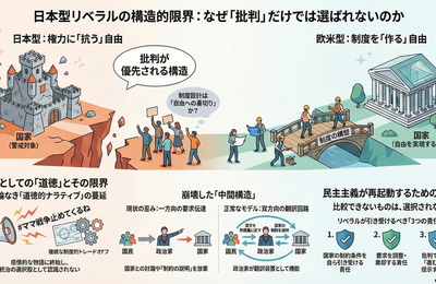 直近の衆議院選挙におけるリベラル系政党の後退は、単なる戦術の失敗ではなく、日本型リベラルが長年抱えてきた思想的・構造的な限界が露呈した結果である。日本型リベラルは、自由の出発点を「権力への抵抗」に置き、具体的な制度設計よりも道徳的な告発や批判を政治的アイデンティティの中核に据えてきた。 本稿では、日本型リベラルが「誰に統治を任せるか」を決定する選挙という制度において、比較可能な選択肢(制度やビジョ…