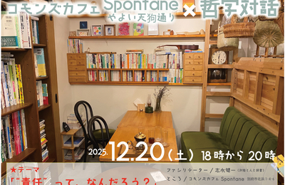 ◆「コモンズカフェ Spontane やよい天狗通り × 哲学対話 12.20」vol.5 今回もスポンタネ ハマハラさんのお招きにより、別府北浜で哲学対話をすることになりました。第5回目です。 みなさんは責任がありますか?今回は「責任」についてみなさんと考えたいと思います。責任感とか、自己責任とか、社会的責任とか、いろんな矢印で使われる言葉です。私は個人的には「責任」を創造性とは真逆のものに感じ…