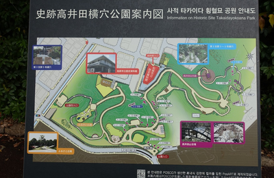 高井田横穴公園の斜面上にある柏原市歴史資料館見学後は、公園内の横穴墓を見て回りました。 公園南裾の入り口には、線刻壁画があしらわれたガラス製の看板。ここはJR高井田駅から徒歩1分。 その背後に案内図があります。園内には20基弱が。 こちらは柏原市歴史資料館展示室の解説パネル。これまでに162基の横穴が見つかっているとのこと。 高井田横穴横穴は、岩盤をくりぬいて造った墓で、古墳時代に九州から東北へと…