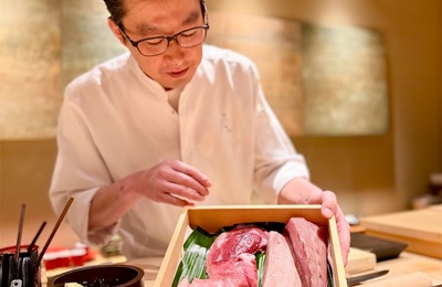 この日は赤坂へやって来ました! 赤坂といえばTBSのお膝元。 多くの芸能人やギョーカイの方々が集うまちで、美味しいものも集まるところですよね。 この日は美味しいお鮨が食べたいねということで、やってきたのは地下鉄赤坂駅7番出口を出てすぐわき、美味しい飲食店が入るビルの2階。 エレベーターで2階に上がると入り口が見えました、今回のお店は2020年の開業から絶大な人気を得続けている、「鮨 こしかわ」さん…