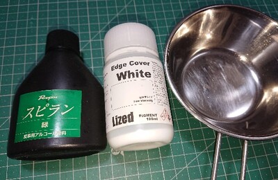SEIWAのスピラン(アルコール染料)とLizedのエッジカバー(ウレタン顔料)を混ぜてみる実験を行います。 スピランは酸性含金染料というものです(たぶん)。エタノールで希釈して使います。Lizedのエッジカバーはウレタン顔料塗料です。 性質の違うものを混ぜようとすると分離したりダマになったりして上手く行きません。スピランを水で希釈しようとするだけでも上手く混ざらなかったりします。 Lizedのエ…
