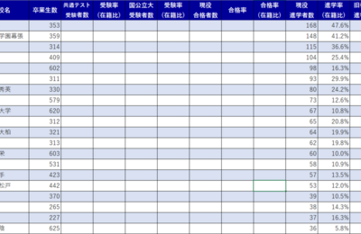 国公立大を目指している高校生は多く、また、高校入試でも国公立大(特に地元国公立大)への進学状況を志望校選びの参考にしている受験生・保護者も非常に多い。 そこで高校は「国公立大〇〇名進学!」など発表しているけど、 いったい何人受けてるんだろう...? と感じる人もいるんじゃないかな、と思う。 実際に、高校の先生とお話していると、東大に20名近く受験して合格3名とか、5人受けたけど0名とか、こういう類…