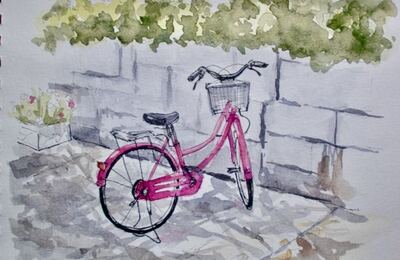 公園にピンク色の自転車が止めてあった緑の中で引き立つ元気色木漏れ日が落とす影模様も楽しい マルマンスケッチ帳 水彩絵の具 RS 災いは忘れた頃に 先月二十日過ぎ、咳と発熱で病院に行ったら、コロナ(nb 1.8.1 )でした。私はこれまでコロナに感染したことがなく、5類に移行してからは世間も騒がなくなり、さほど恐れることもないインフルエンザの一種、くらいの感覚でほとんど警戒していませんでした。が、今…