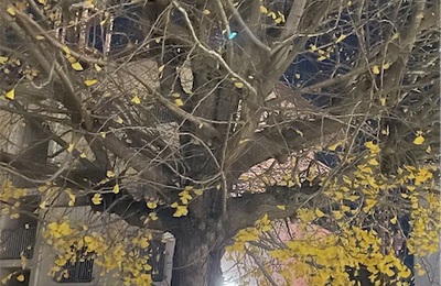 昨日の風で、ほとんどの葉が落ちてしまった。 毎年、葉が少なくなった木を見て思うのが もしも、私が葉っぱなら、 もう枝から落ちて、落ち葉たちの集団の中にいるのだろうか? その集団のどこらへんにいるのかな? または、風次第であちらこちらに吹き飛ばされているのだろうか? 落ち着いたらまた、風に飛ばされる? もしかして、まだ図太く枝についたままなのだろうか? 上を見上げれば、まだ頑張って残ってる。 なんて…