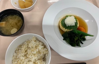 仕事で練馬区役所に来たらお昼になったので、地下の食堂でランチ。 豆腐ハンバーグのセットです。 正式名称は忘れてしまいましたが、小鉢(じゃがいもの煮物)、味噌汁もついて600円でした。 ご飯は白米か玄米か選択でき、量も調節してもらえます。私は玄米をチョイス。 見た目は簡素な雰囲気ですし、ご飯はでかい釜で炊いたとき特有の謎な食感でしたが、味は美味しかったです。古き良き日本人の食事みたいな感じでしたな(…