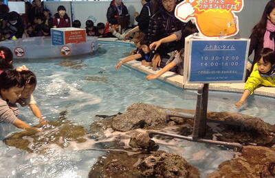 <日付:2013/12/15:20131215> 投稿日現在工事中で、淡水魚と野鳥のコーナーの付近に新館が設置されるため、閉鎖されている。(案内図では、淡水魚~は出口付近に独立しているので、違和感なく案内が無くなっている) ふれあいコーナー(コロナ禍に翻弄され、全休館、ふれあいなし、客寄せでふれあい復活、客が増えてきて小規模化とか、たいへん。) 磯の展示(後に息子が大好きになるのは、このような展示…