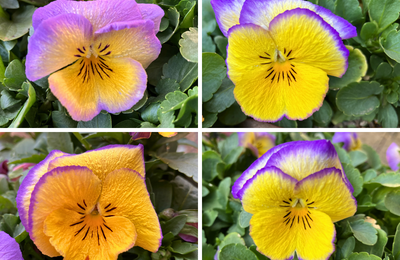 2月下旬。虹色スミレのラブリームーン(ビオラ)も、花が増えてきました。まだ咲きそろう前。黄色と紫の出方が、花ごとに少しずつ違います。写真で残していきます。 撮影日:2026年2月22日 置き場所と条件 1鉢に同品種3株の寄せ鉢。同じ品種をまとめて植えています。 置き場所:南西側のお庭 日当たり:午前10時頃から午後3時ごろまで 虹色スミレ「ラブリームーン」1鉢。開花は途中。 今回の状態 花の中心は…
