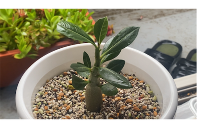 この植物はうちで育てているアデニウム・オベスムという塊根植物です。近所のホームセンターで販売していたのを購入しました。値段は500円以下で売られていました。アデニウムは大きいのもだと数千円から数万円で売られており、1000円以下で買えたのは幸運でした。 アデニウムの原産地はアフリカ南部や東部で生息しており、砂漠のバラと呼ばれる濃いピンク色の花を咲かせるようです。また、塊根は大きく立派なものに育つよ…