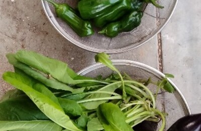 茄子が10個ほどと、ピーマンがた~くさん ご近所さんに配り。 これは今夜の我が家で食べる分です。 旅行から帰って、野菜は有り余るほどですから、買いに走る事もなく、 牛乳 卵 お豆腐 のみ今日 購入。 暑かった頃なら 8日も家を開けられませんが、10月も下旬となると、 水を撒かなければ、という心配もなく、 野菜達は、元気に 育っていました。 白菜は葉っぱは沢山出てきますが、 巻き始め? キャベツの苗…