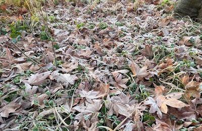 2025.11.26. 雪が降ったり、霜が降りたり。先日に降った雪はその日のうちに消え、今朝は一面に白い霜。