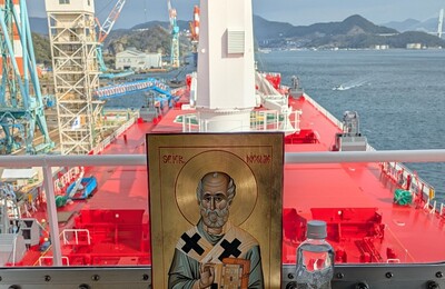 一昨日、長崎市の大島造船所香焼工場でギリシャ船の船舶成聖式を執り行いました。 午前10時から工場の岸壁に来賓が集まり「命名式」。 これはメーカーから発注主に完成した船を引き渡すセレモニーで、それまで製造番号しかなかった船に初めて名前が付けられることから「命名式」と呼ばれます。 新しい船の名は「マーラ・サムライ」です。 船の建造の発注者は大手の海運会社ですが、造った船を自社で所有して使う場合と、出資…