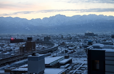 大雪の北陸を見たくて飛んできたが ずっと吹雪で山が見えなかった ところが最後の日の早朝だけ 剱岳が姿を現した ほんの1時間で姿が消えた ホテルの15階からです 6時半ぐらいじゃないかな ホテルの窓ガラス越しで撮影 真ん中が剱岳で 右に立山連峰 立山の方が少し高く3000mを超えます 山としての人気は剱岳ですが 実際に訪れる人の数は 立山の方が多い 立山は室堂までは乗り物で行けますから 朝一番は見え…