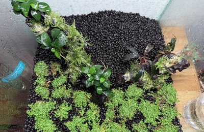 ミスト式を始めて10日後の記録。 まず報告したいのは……カビ、出ませんでした!👏 ネットで「絶対カビる」とか「白いモフモフ地獄になる」とか脅かされてたので、ちょっとドキドキしてたんだけど、無事クリア。 一応、順調にみえる。 主役のキューバパールグラスはというと、まだ「絨毯」には遠いけど、光に向かってモコモコ上に伸びてる。これはこれで可愛い。 そして新メンバーが加入しました。(チャームより購入) •…