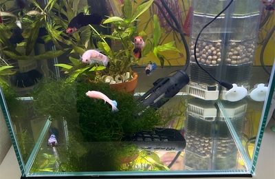 ベタの稚魚たちが生まれて、1年たちました。 長くて短い1年でした。 先月から私もフルタイムで仕事を始めたこともあり、観察がなかなかできないのですが、最低でも週1の水換えは1年ずーっと続けてきました。 今日は久しぶりに水槽丸洗い! 全員で20匹になってしまいました。 唯一のオスっぽかった子は先日亡くなってしまいまい、全員メス。 各自好みの場所があるらしくそこにいたり、近づくと上に寄ってきたり。 以前…