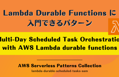 AWS Serverless Patterns Collection の「Multi-Day Scheduled Task Orchestration with AWS Lambda durable functions (lambda-durable-scheduled-tasks-sam)」は AWS Lambda Durable Functions を使った数日続くシンプルなワークフローを試せ…