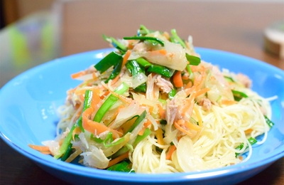 沖縄で年中食べるそうめん料理をパスタにアレンジ。ツナと白だしの旨味が絡む、爆速チャンプルースパゲティ。「チャンプルー」は沖縄の言葉で“混ぜ合わせる”。野菜とツナの旨味、白だしのまろやかさが絡むと、気づいたら皿が空っぽになる魔性の一皿が完成する。材料は冷蔵庫の余り物でも、なんくるないさ〜。 沖縄チャンプルーパスタの材料 カペッリーニ:100g ニンジン:30g 玉ねぎ:1/4個(60g) ニラ:25…