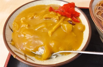 少し寝坊して新日本橋で乗り換え 朝ごはんはそばよしに立ち寄りました 券売機、限定はけんちんとトッピングの春菊天は朝は仕込みが未だみたいで購入不可 食券購入しカウンターに渡します カレー丼セット温そば 810円 葱の有無を聞かれて有りと紅生姜をトッピング 細い生蕎麦、お出汁が美味しい カレー丼 黄色いカレーが、もったりした新潟バスセンターを彷彿させるカレーで美味しい、今度は単品大盛りデス、完食ご馳走…