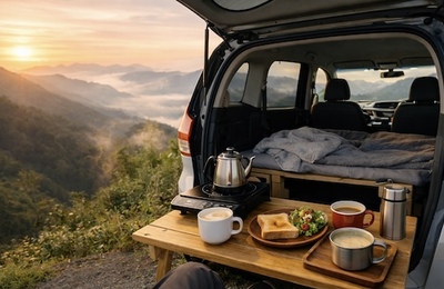 おはようございます。 昨夜も、車中泊の妄想が止まらず・・ こんなこと考えてました。 車中泊というと、どうしても「夜」のことばかり考えてしまう。 ちゃんと眠れるだろうか、とか、寒くないだろうか、とか。 けれど、実際にやってみると、印象に残るのは朝の方かもしれない。 リアゲートを開けると、冷たい空気がすっと入ってきた。 山の朝は静かだ。 まだ太陽は完全には上がっていない。 家にいるときの朝食は決まって…
