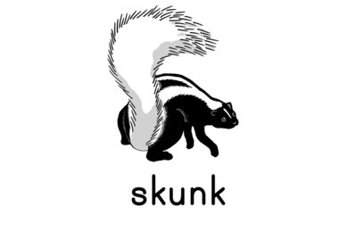 英単語 skunk(スカンク)のイラストカードです。スカンクは、強いにおいの液を出して身を守る動物です。ふだんはおとなしいですが、危険を感じるとしっぽを上げて相手に警告し、最後の手段としてにおいを放ちます。北アメリカに多くすむ、夜行性の動物です。 カタカナにすると「スカンク」。最初の sk の部分は2つの子音が連続します。「スク」と 素早くはっきり読み、「ァンク」と続けると英語らしく聞こえます。 …