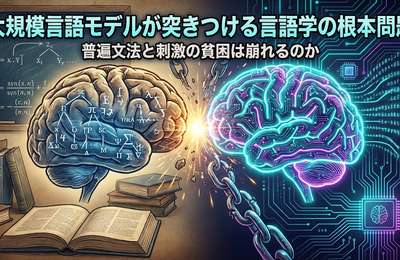 大規模言語モデルが突きつける言語学の根本問題:普遍文法と刺激の貧困は崩れるのか ChatGPTをはじめとする大規模言語モデル(LLM)の登場は、チョムスキーの普遍文法理論と「刺激の貧困」論に根本的な問いを突きつけた。明示的な文法規則なしに、統計的学習だけで人間並みの言語能力は獲得可能なのか。本稿では、言語学50年の理論対立・最新の実証研究・解釈上の限界を整理し、LLMが示唆する言語理解の転換を考察…